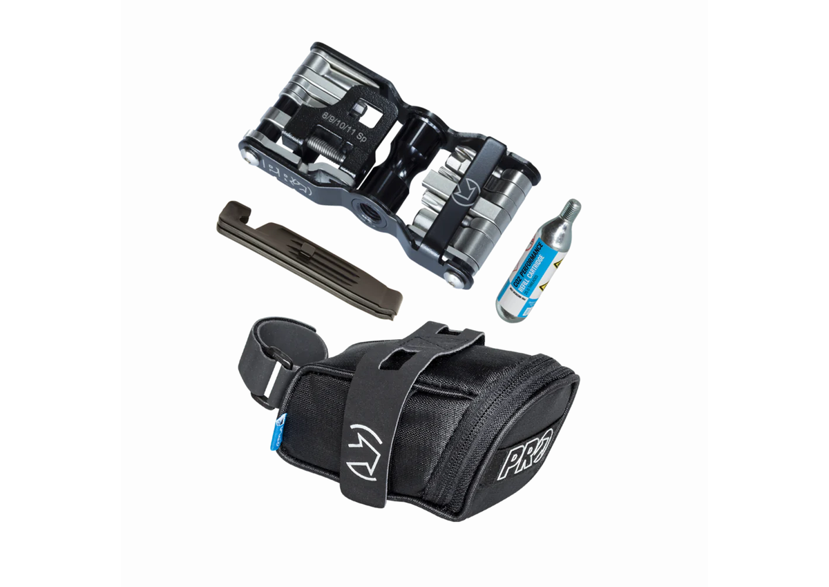 - This bundle has everything - saddle bag, tire levers, Co2 cartridge, and a 20 function multi-tool/Co2 tire pump