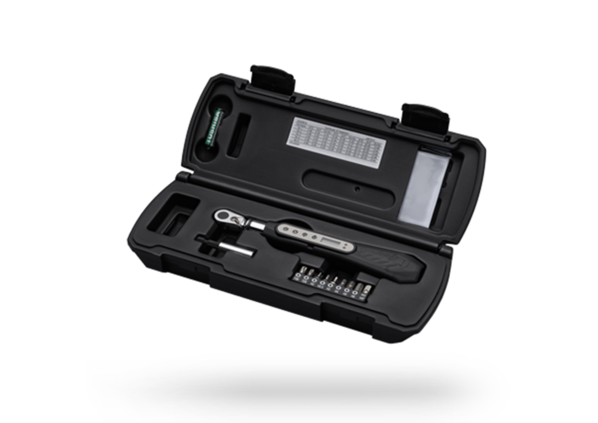 Designed to provide you with a better sports’ bicycle experience the PRO Team Digital Torque Wrench ensures that you will never overtighten a nut or bolt again. It features a ratchet system with a digital strain gauge and an LCD display. It boasts a 1-20Nm torque range, can measure in ft-lb, in-lb and kg-cm, as well as Nm, and has an accuracy of ±3%. The Team Digital Torque Wrench’s simple to use controls allow you to pre-set the required torque, for the part you are tightening, and a warning beep will alert you, along with a visual indicator on the LCD screen, of when you have reached that value. It is sold in a blow-mould protective case with nine tool bits, including 2/2.5/3/4/5/6 hex, T20/T25 and a ¼ inch adaptor, to ensure ease of use.